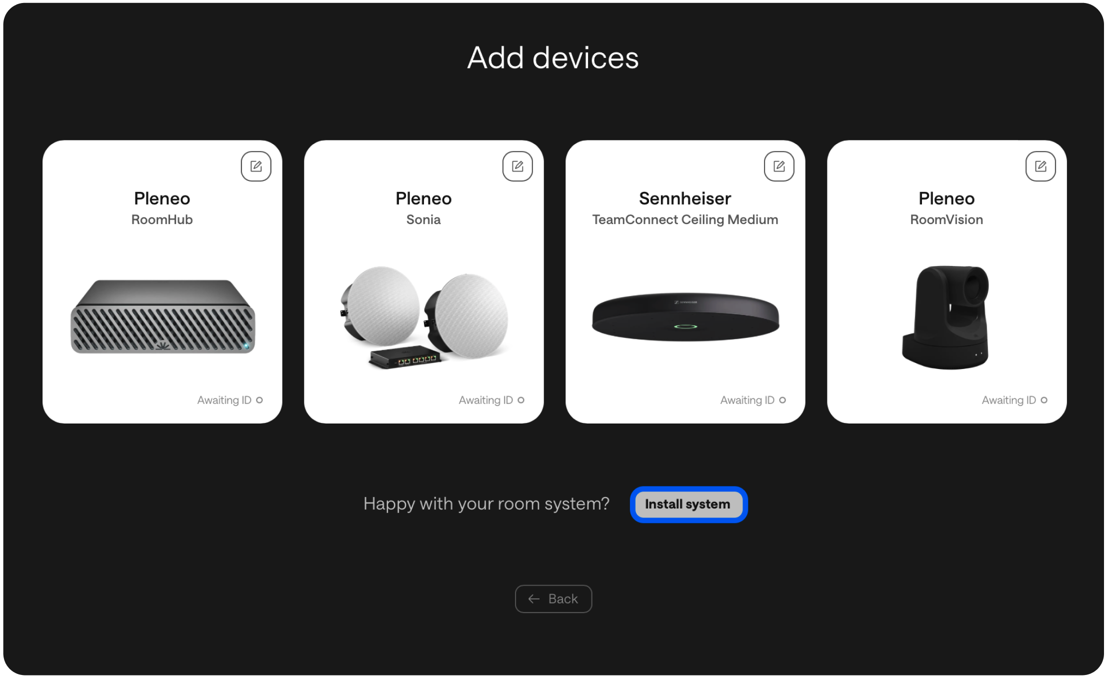 When RoomHub is connected on-site and has internet access, it will automatically connect back to Pleneo Cloud, download the full system configuration, and run the AI AutoDeploy process.