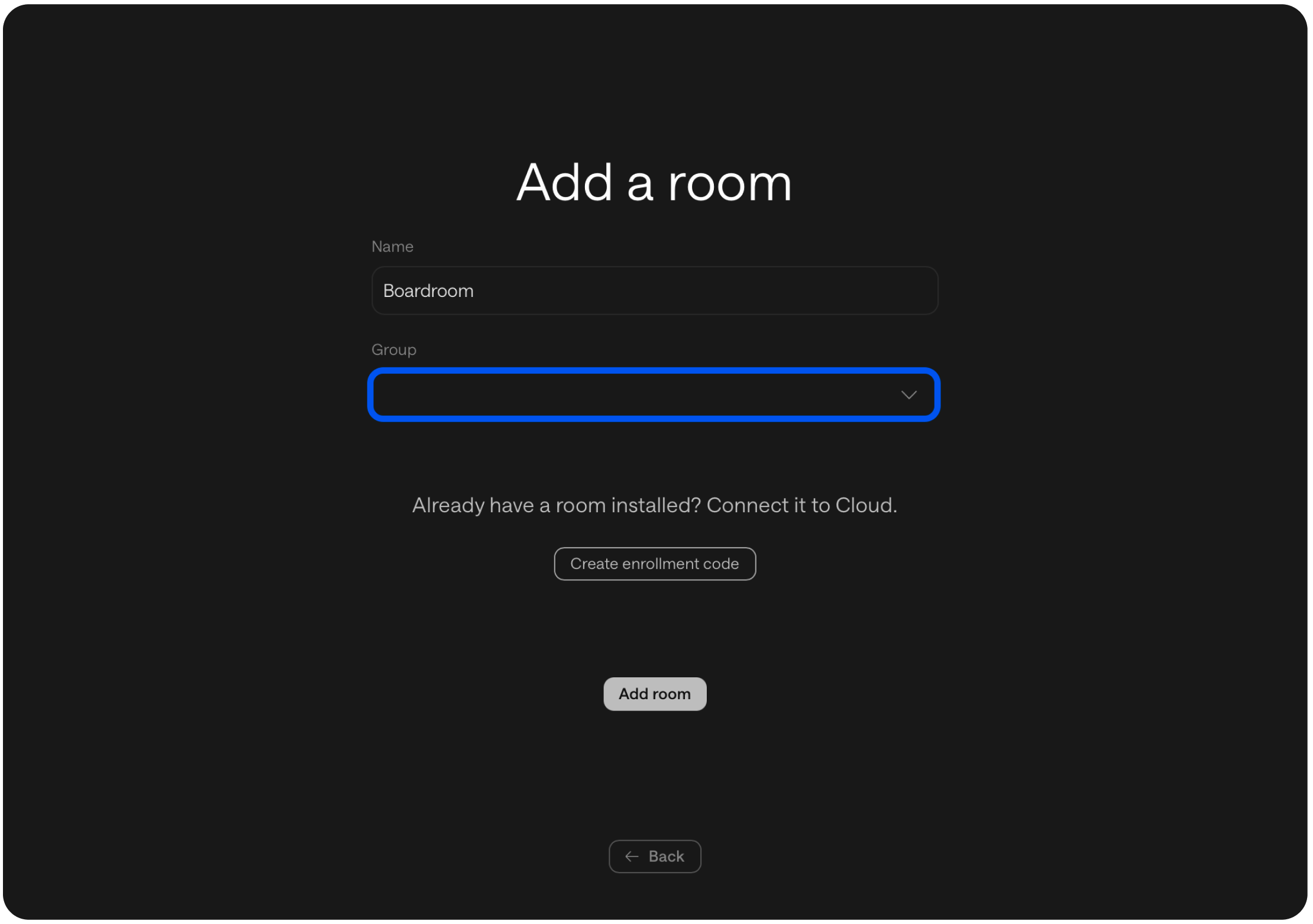 Enter a Name and select a Group (location) where you want the room to live.