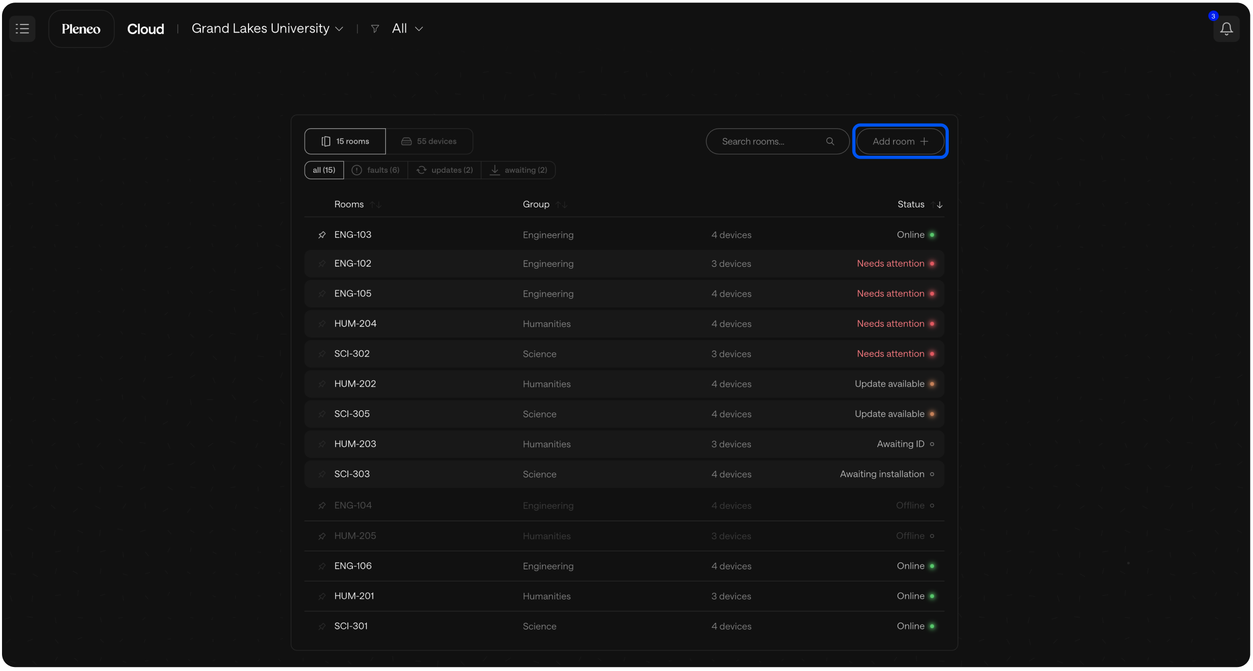 Pleneo Cloud turns room deployment into a simple workflow.