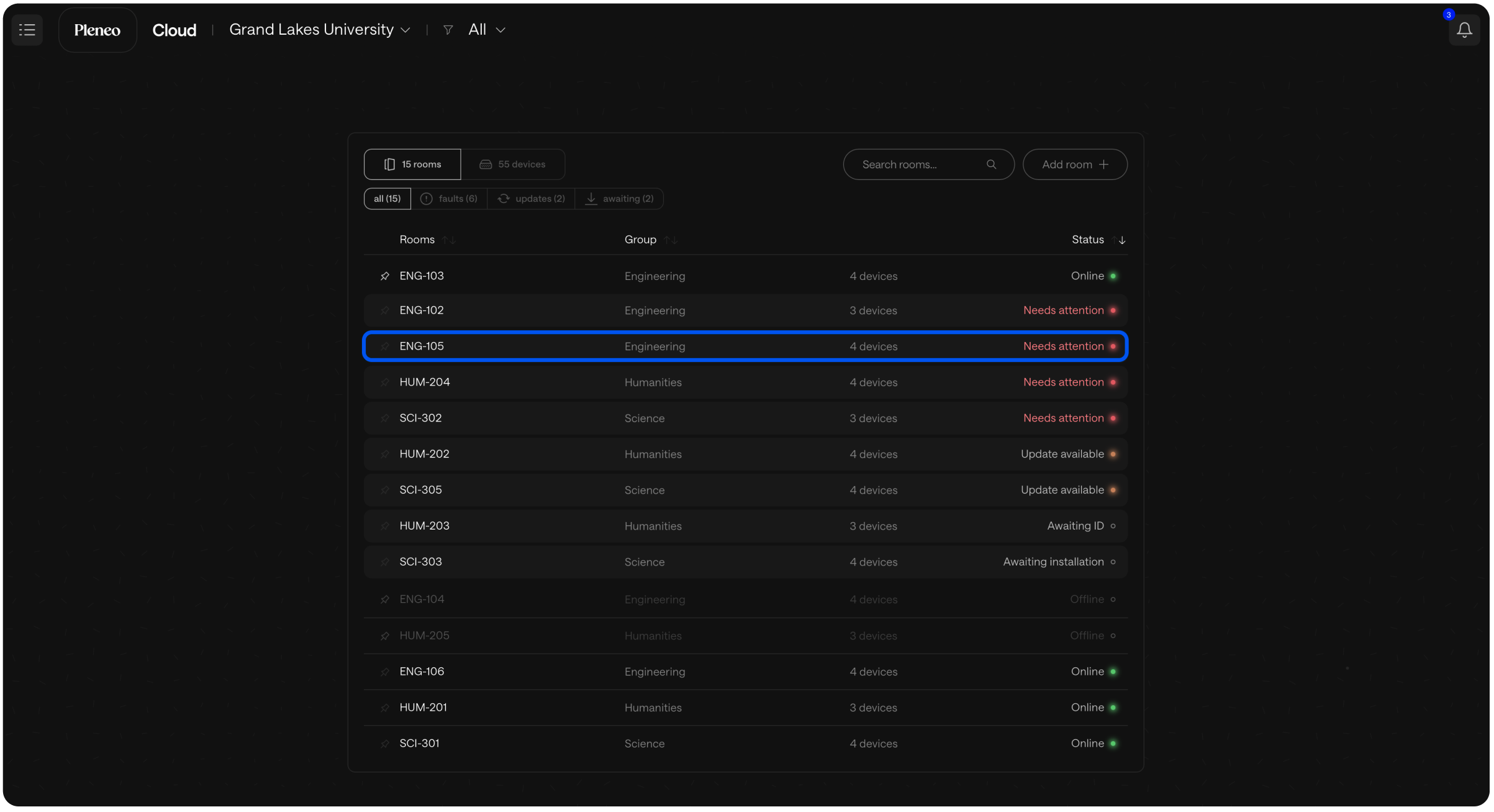 Pleneo Cloud lets you test a room at any time, without being on-site.