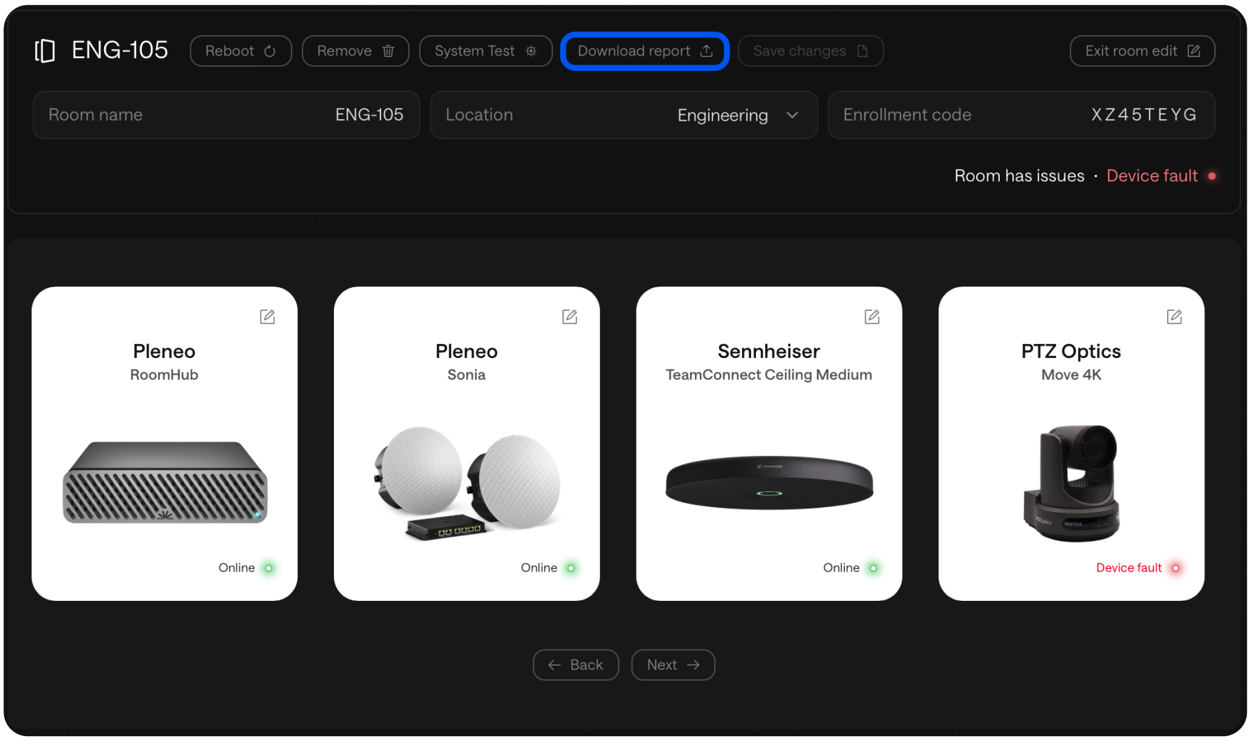 Whenever a room is tested, either through AI AutoDeploy or a manual System Test, a report is automatically generated.